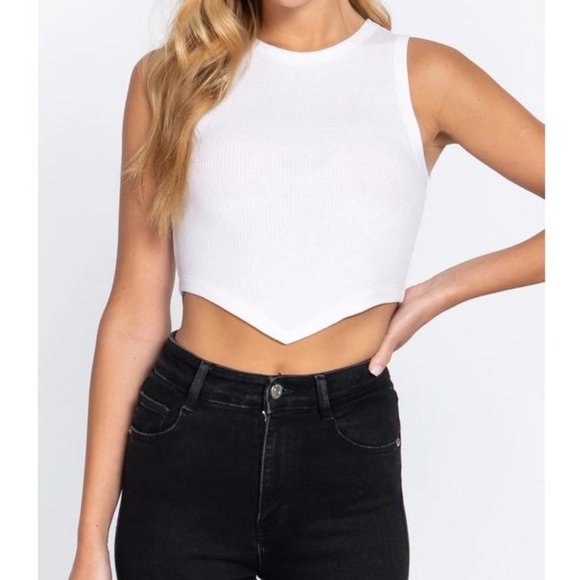Sleeveless Pointed Hem Rib Crop Top