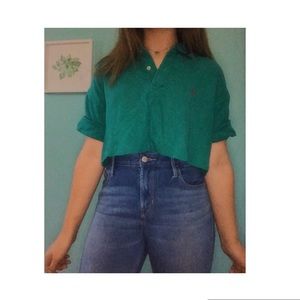 Trendy cropped polo! Size Large but fits sizes XS-L! The model in the first three pics wears XS and the model in the other two wears a medium! These are so in right now and it would look so cute with high waisted shorts or jeans for summer!