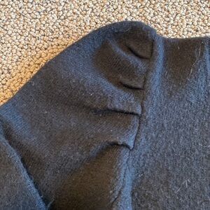 Adorable sweater. Cropped and has a puffy sleeve. Very warm. Minor pilling but good otherwise.