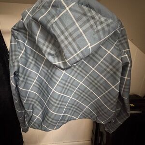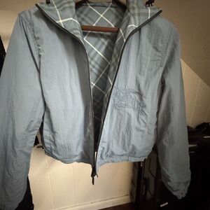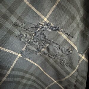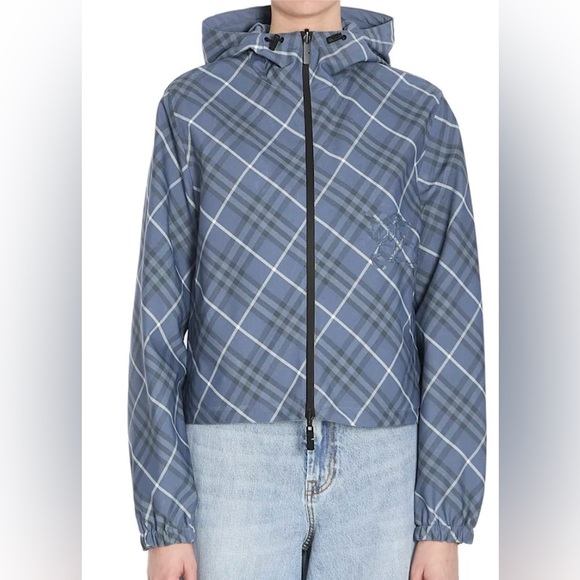 A lightweight jacket in Burberry Check twill, reversing to a solid colour in nylon. The design is cut to a relaxed fit with a cropped hem and is appliquéd on both sides with our Equestrian Knight Design.