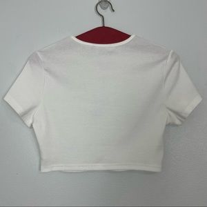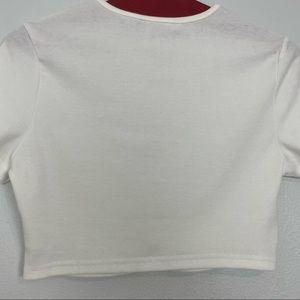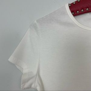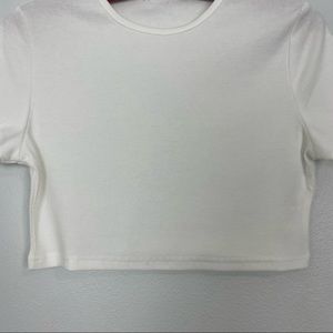 •Ribbed baby tee •Cropped •Short sleeve •Round neck •White •Size small (missing size tag - see approximate measurements)