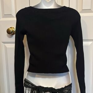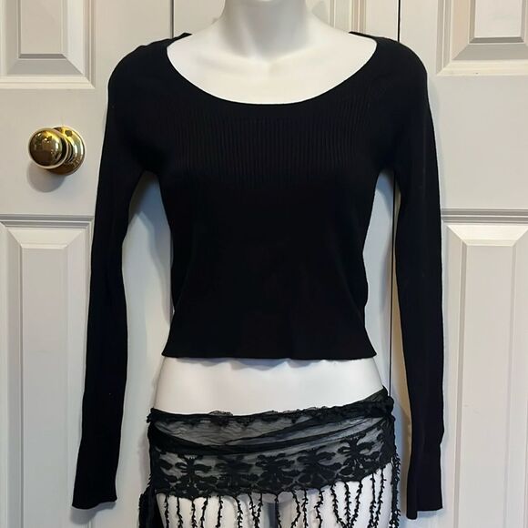 Cropped Ribbed Black Sweater Long Sleeve Crop Top Stretchy Shirt Women’s M