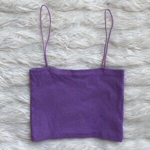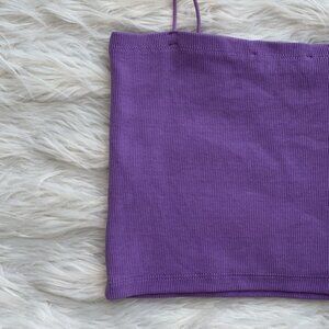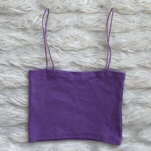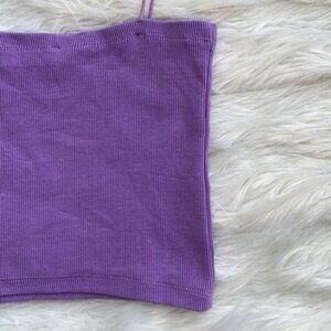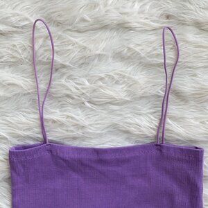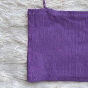 In excellent condition. Size large. Deep lilac purple color. Stretchy ribbed material. Straight neckline. Thin spaghetti straps.
