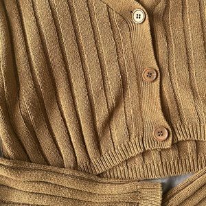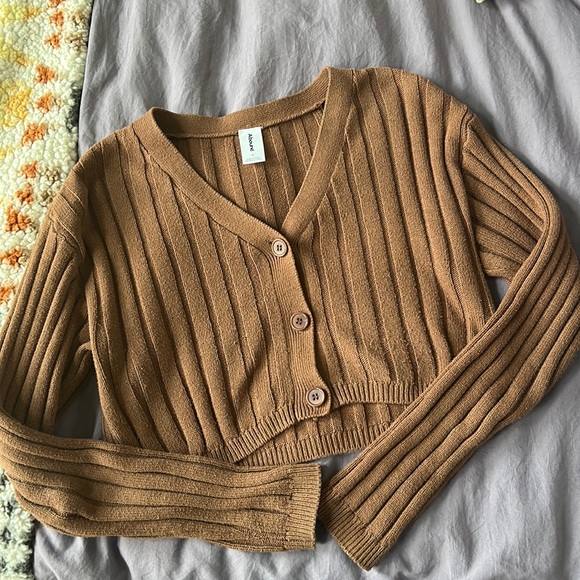 Cropped Ribbed Cardigan Sweater Small