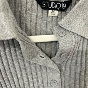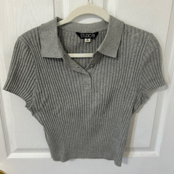 This top features a classic polo collar and a fitted design with ribbing. Made with a soft knit fabric!