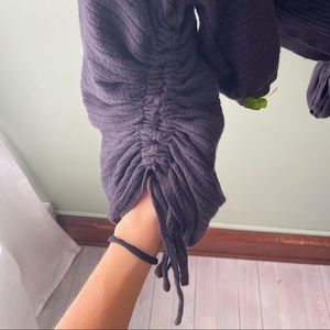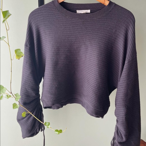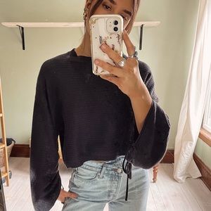 black cropped ribbed sweater | chunky, wide sleeves with drawstrings