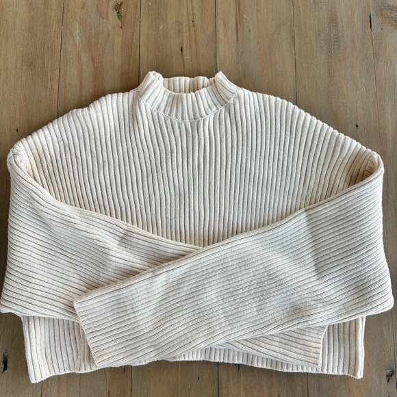 Cropped, oversized ribbed cream sweater. Super soft. Never worn but no tags.