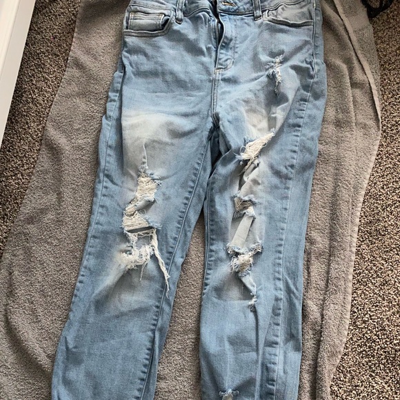 Cropped Ripped Jeans. Light Blue. Great Condition. Very Soft. Light Washed