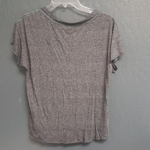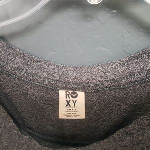 Black heather print Roxy brand tee shirt, hem is diagonal in the front, looks great with sweat pants and tights