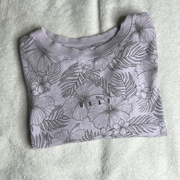 Lavender floral boxy cropped Roxy tee. Like new condition!