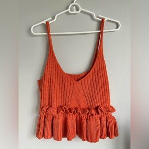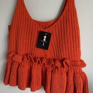 Brand new, and never worn! Made of sweater material in beautiful and fun orange color. Straps are not adjustable. The fit is cropped.