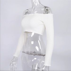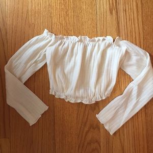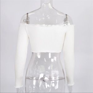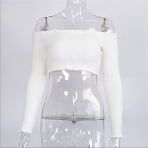 New cropped ruffle sweater. Pretty cream color. Pair with jeans and a long jacket or cardigan. No trades