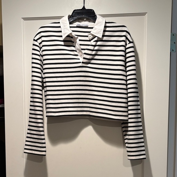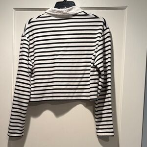 Only worn a handful of times. Cute black and cream colored stripped collared rugby polo.
