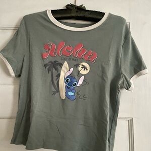 Fun Disney tee with 'Aloha state of mind' and Stitch design. Perfect for casual wear. Cropped fit perfect for a pair of jeans. No signs of wear- worn once for a spirit day! Style tags: Disney, lilo and stitch, Hawaii, beachy, surf, 90s, 2000s, Y2K