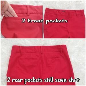 Bright cherry solid red textured stretch fabric, cropped ankle length, 4 pockets, hook/bar button & zipper closure, slits on leg hems. Issues noted in photos. Excellent preowned condition, overall. Size 12 by Talbots. Style: Hampshire Crop Pant