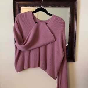 Slightly cropped boutique sweater. Never been there worn. Bell sleeves with a wide crewneck. Super cute light purple/plum color would look great with flare jeans. In Excellent condition.
