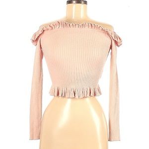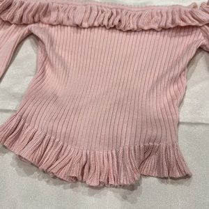 - Ruffle, off the shoulder, sweater crop top - light pink - long sleeve - excellent condition