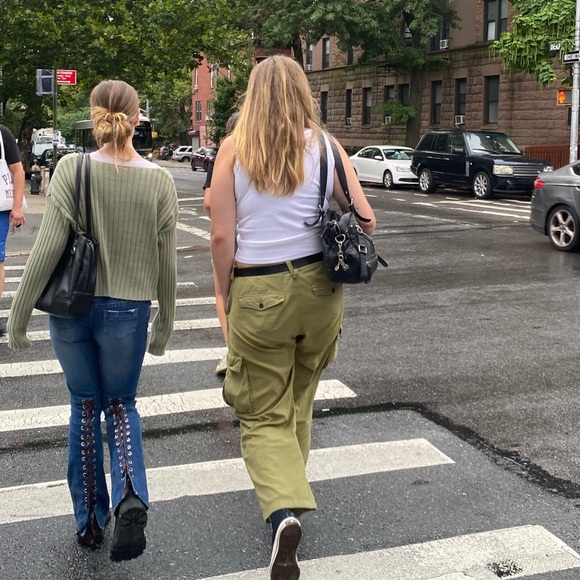 Olive green cropped sweater from Nordstrom. Wide neck so can be worn off the shoulder. Brand is Abound. Size small.