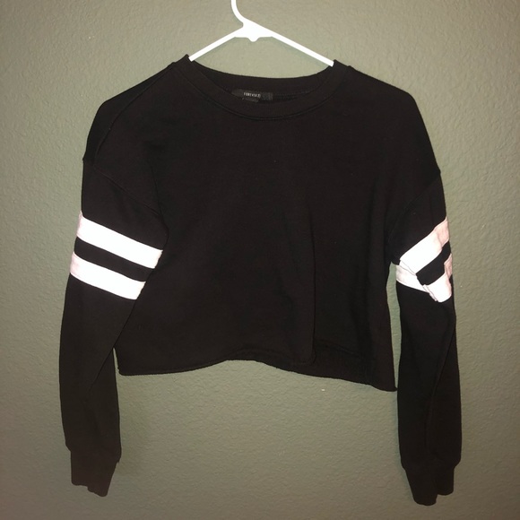 Cropped, black with white stripes on the sleeves, small size, worn once, great condition