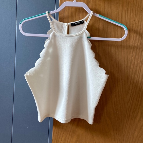 SHEIN Cropped Tank. Super cute, in great condition. A few snags noted on tank (picture #2). Keyhole back, scallop details.