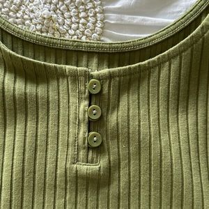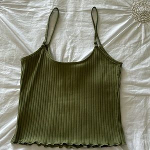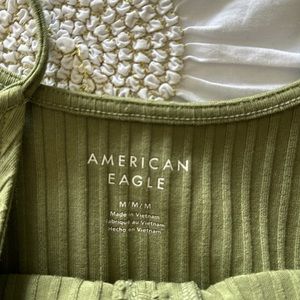 Green cropped tank top from American Eagle Outfitters. Tags removed but never washed or worn. Adjustable straps. Pit to hem measurement is 10 inches. Item is in perfect condition with no holes, rips, or stains. Feel free to ask any questions; offers always welcome! Bundle two or more items and save!