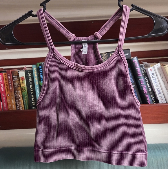 purple cropped, fitted tank! no flaws, smoke free home. size small/medium!