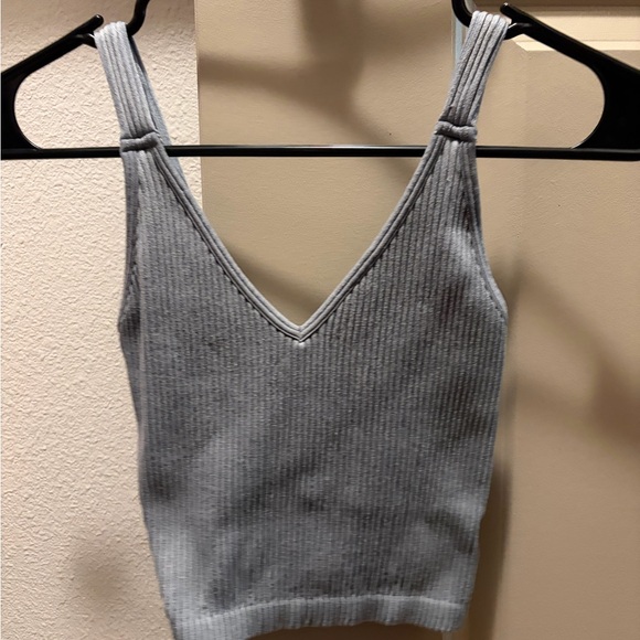 gray crop top tank top with ribbed effect. has inserts for pads but does not come with pads