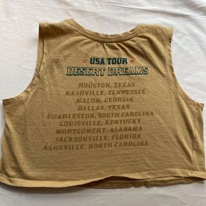 A cropped tan concert tee made with recycled fabrics! Rarely worn and in very good condition!