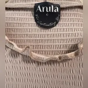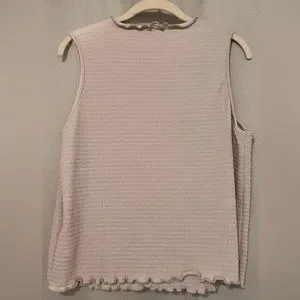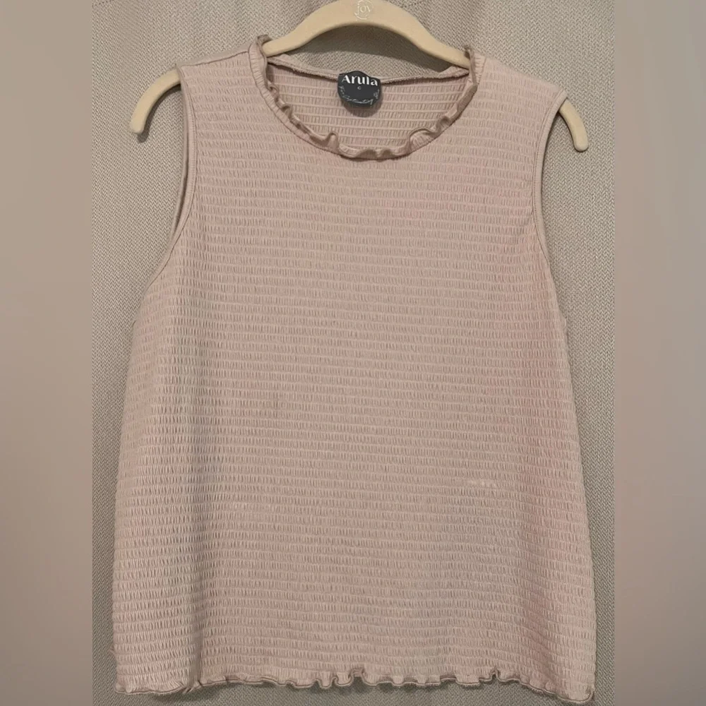 Stretch crop tank top with ruffle bottom and neckline. Arula size C = 22W-24W