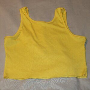 This is a ribbed cropped tank top. the material is really breathable but not see through. It is true to size and very comfortable. It is quite bright in color!