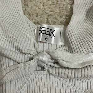 Size XS. Cute detailing in the front. Stretchy.