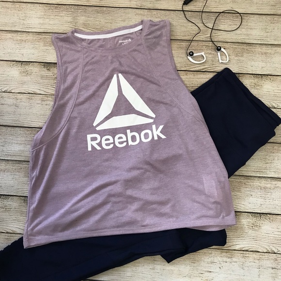 Whether you're heading to the gym, the dance studio or the dog park, you'll feel comfortable in this crop top by Reebok. It features the Reebok emblem on the front and an airy cut-out detail on back.