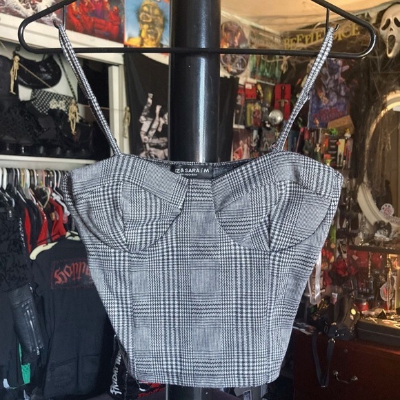 black and white flannel crop top tank top by liz and sara #flannelcroptop #croptop #blackandwhiteflannel #tanktop #lizandsara 2