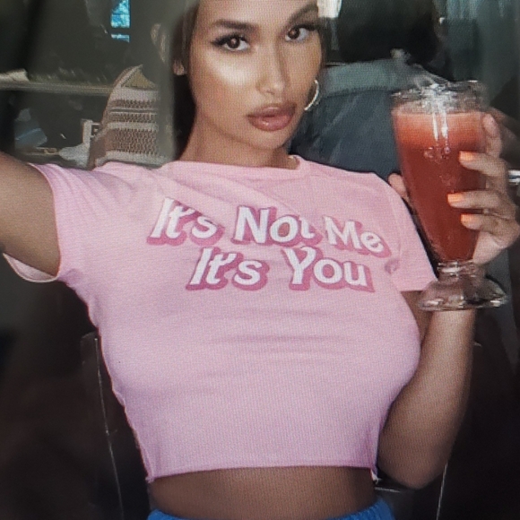 Cropped Pink Top with unfinished hem. Fits true to size, material is smooth and comfortable. Some stretch (not a cotton t-shirt).