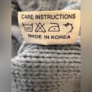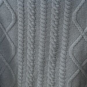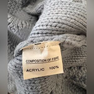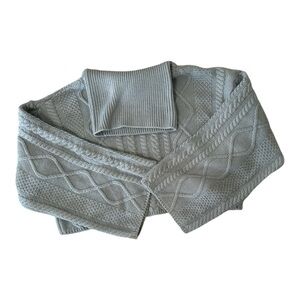 Cropped Turtleneck Cable Knit Sweater in light Blue with wide sleeves.