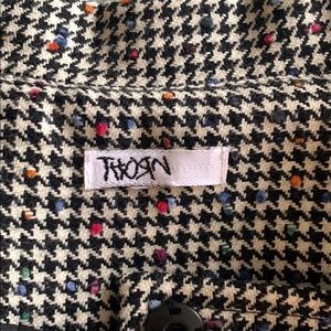 Black and white with small different colored dots