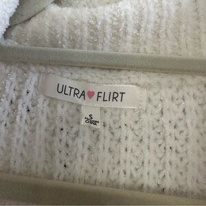 Cropped Ultra Flirt White V-Neck Cable Knit Sweater Size S