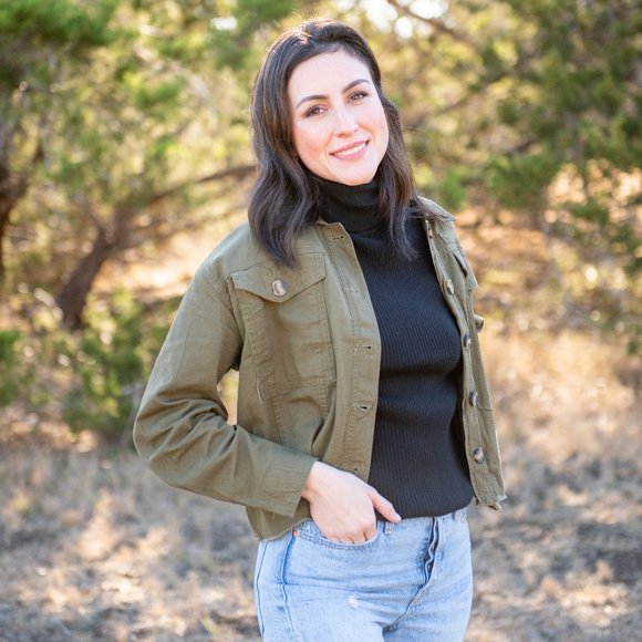 fit & fabric: This long sleeve button down utility jacket with pockets and distressed detail. Runs true to size. 100% Cotton.