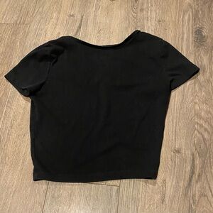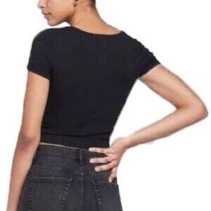 Cropped V neck top women’s xs black euc sexy flattering juniors comfortable