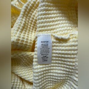 Brand new with tags! Women’s super soft and stylish button down shacket. Cropped length with short dolman sleeves in a light yellow color. Waffle textured fabric.