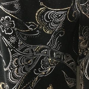 Gorgeous NWOT XSCAPE black faux velvet long sleeve cardigan set with gold embelish.