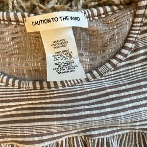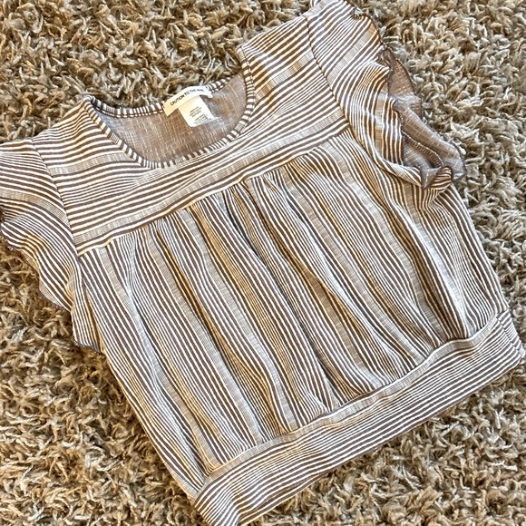 Tan and white cropped top with ruffle sleeve detail. Super cute for spring and summer! Never worn. Free People vibes ✌🏻