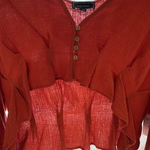 Never worn, with tag still on. Rust/orange color. Cropped long sleeved blouse. 100% cotton. Bought from a local boutique in Pittsburgh