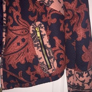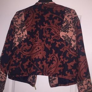 Navy, burnt orange, salmon and gold bomber jacket with gold zipper (only worn once) cropped fit