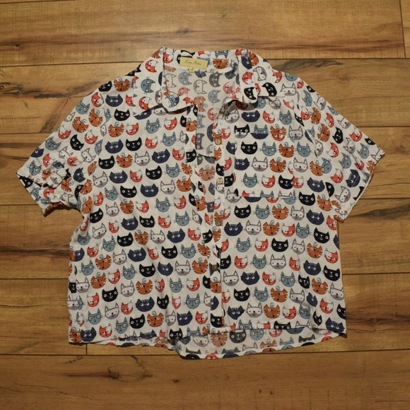 Cropped button down with cats. Very light a flowy.