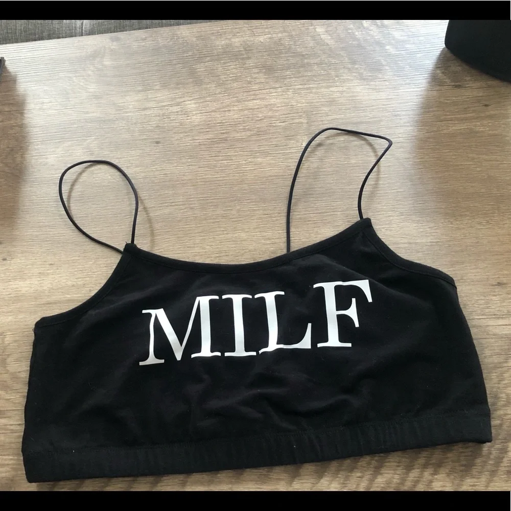 Cute cropped “MILF” cami. Size large. Smoke free home