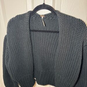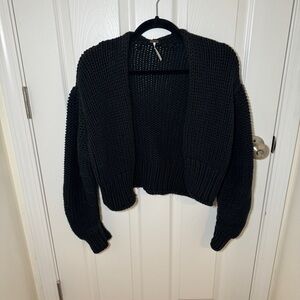 Black chunky knit open front sweater from the brand Free People. Cropped. Relaxed shape. Size Medium. Good condition.