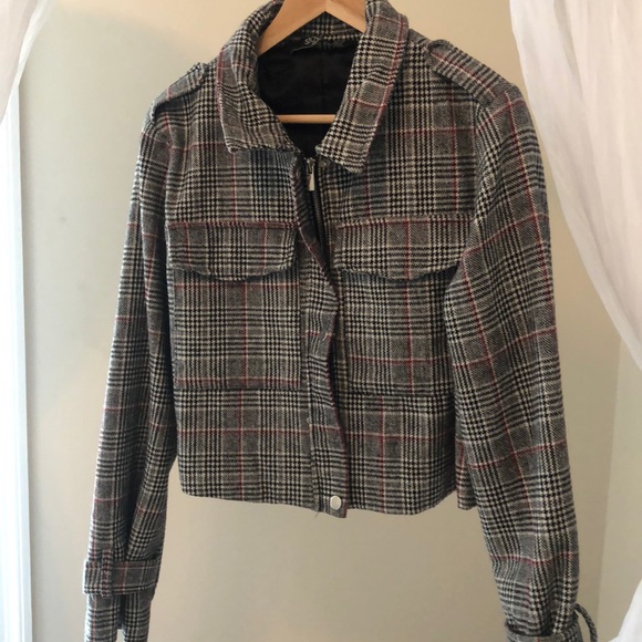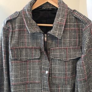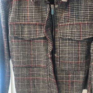 Black white with red. Zip up with snaps. Xl juniors....Fits more like a medium women EUC