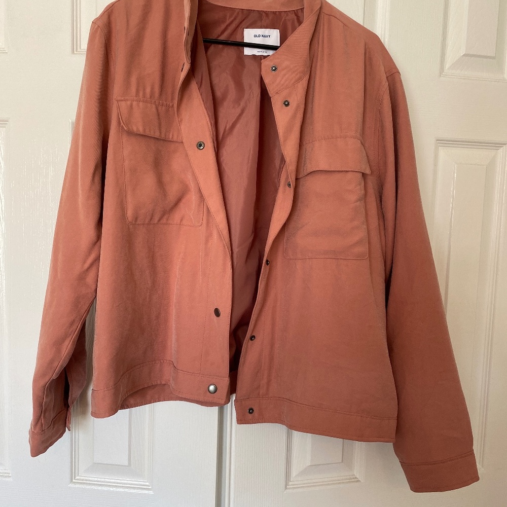 Cute old navy cropped jacket for spring weather. Has a silky feel to it
