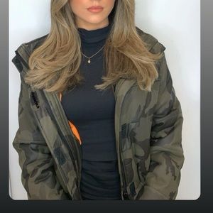 Cinched waist. Cropped. Orange interior. Zipper & Velcro button up